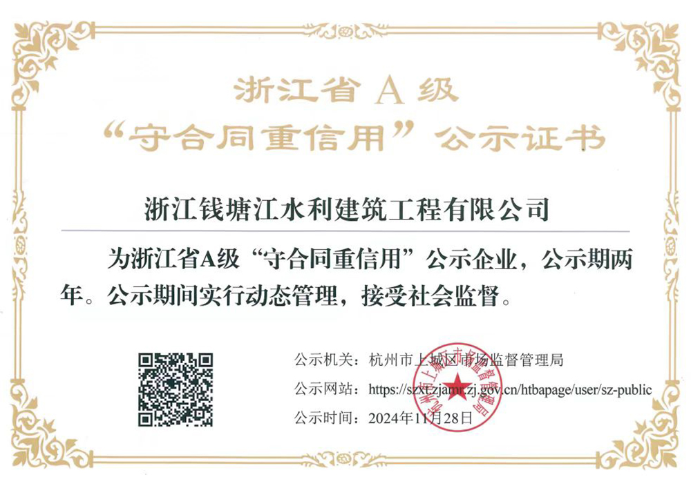 “守合同重信用”公示证书